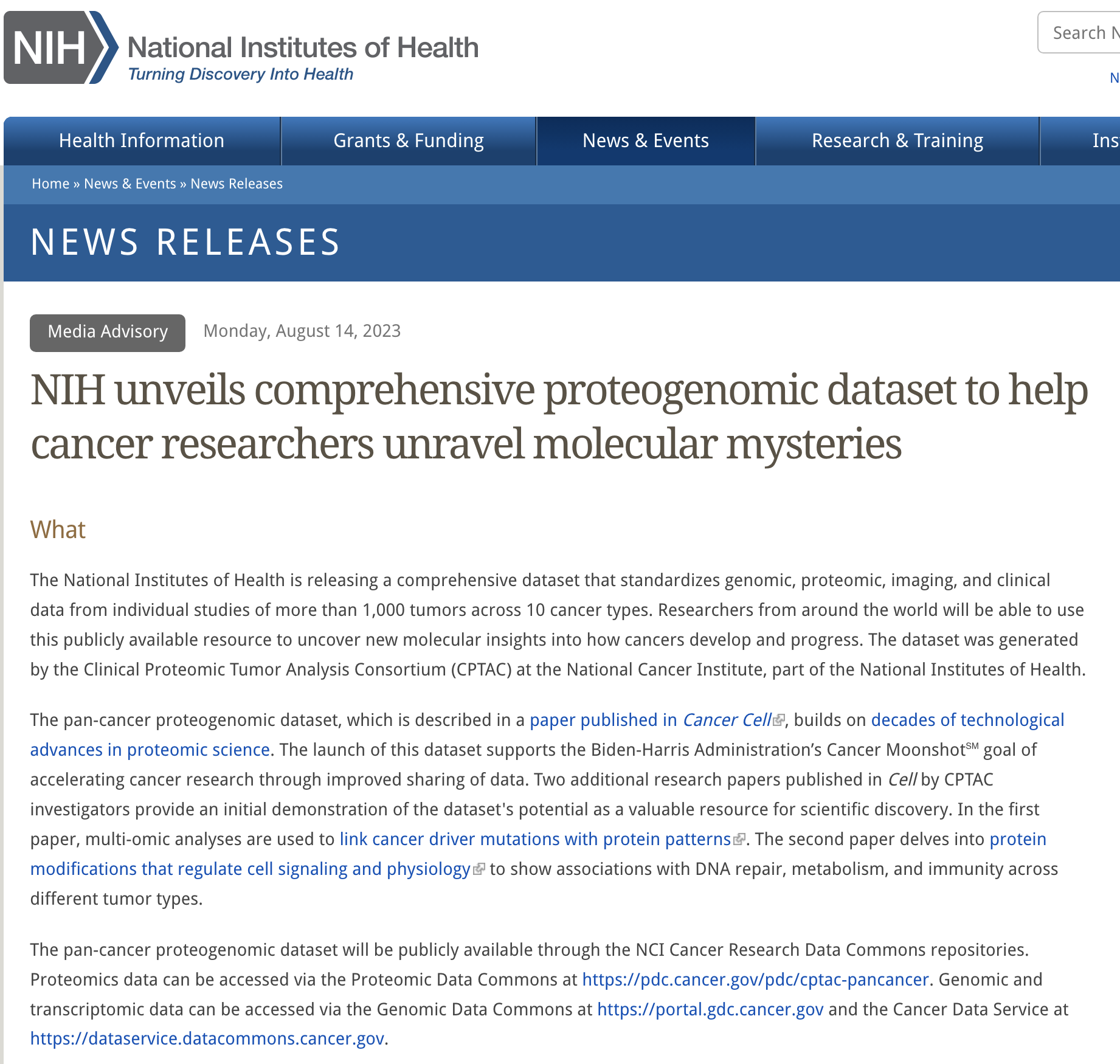 Enjoy the read “NIH unveils comprehensive proteogenomic dataset to help cancer researchers unravel molecular mysteries!” here. CPTAC also released news about a suite of pan-cancer papers. Read here